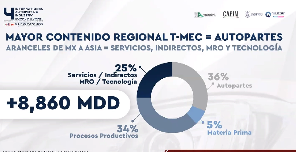 Ahí, el diagnóstico sobre reglas de origen, sustitución de importaciones y búsqueda de proveedores sirvió para enmarcar el anuncio de la cuarta edición del International Automotive Industry Supply Summit, que se realizará el 6 y 7 de mayo en el Centro de Congresos de Querétaro.