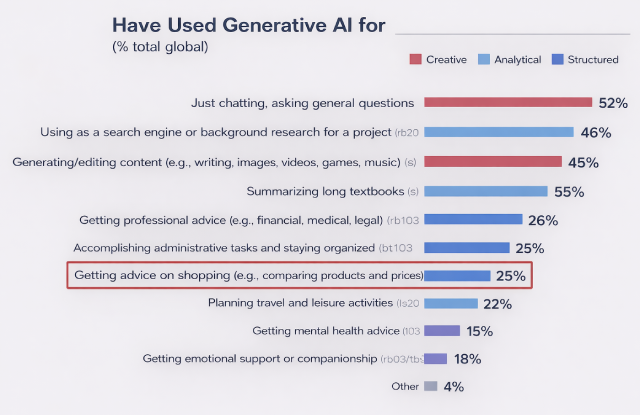 Uno de los datos más relevantes compartidos por Kantar es que cerca del 80% de los compradores en Estados Unidos ya utiliza motores de respuesta o asistentes basados en IA para al menos la mitad de sus decisiones de compra.