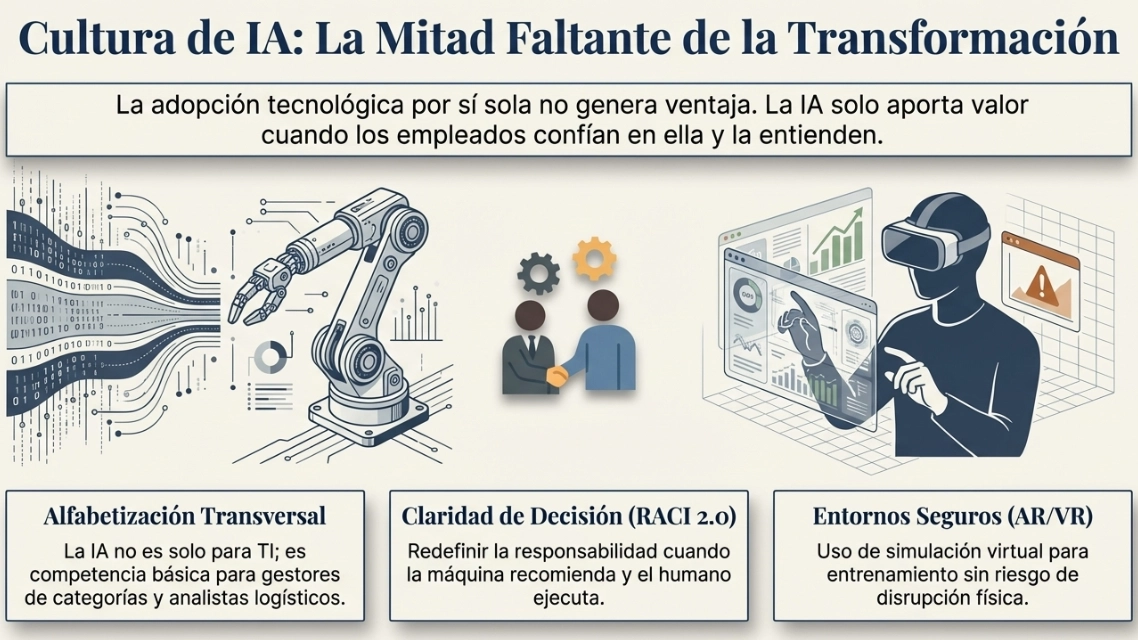 - Alfabetización en IA: Las empresas líderes fomentarán una cultura donde todos los niveles entiendan cómo funcionan los modelos de IA y cuándo escalar decisiones a humanos.