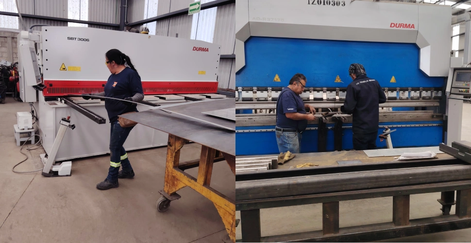 La producción está dividida en cuatro fases. En la primera el equipo se encarga de proveer los insumos que darán forma a la base del remolque con equipo de corte y doblez: cizallas, cortadoras con pantógrafo automático, etcétera.